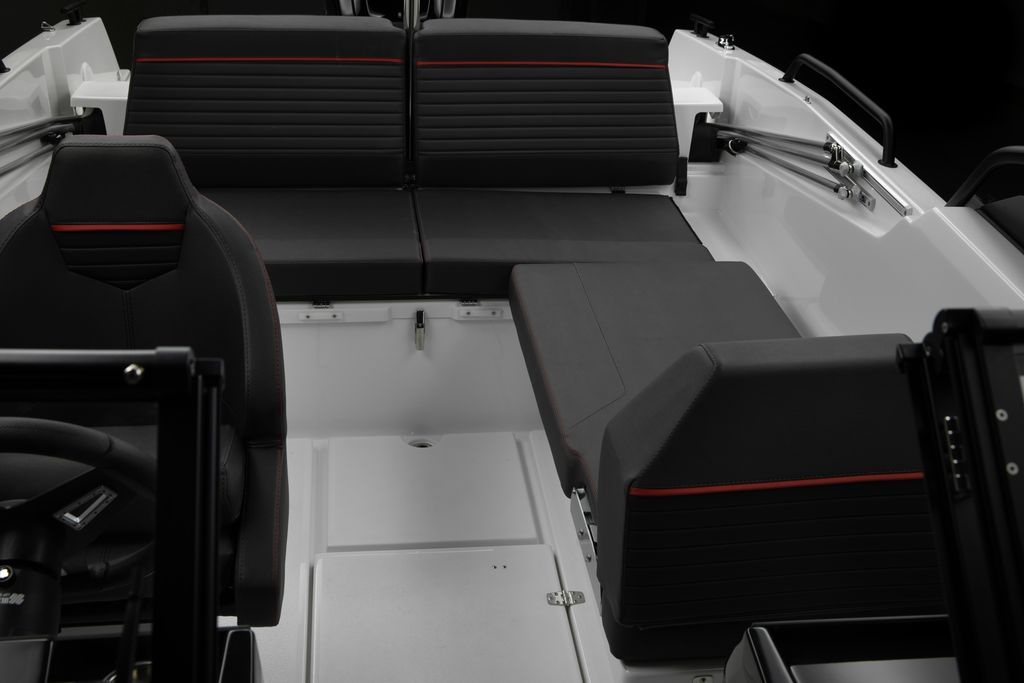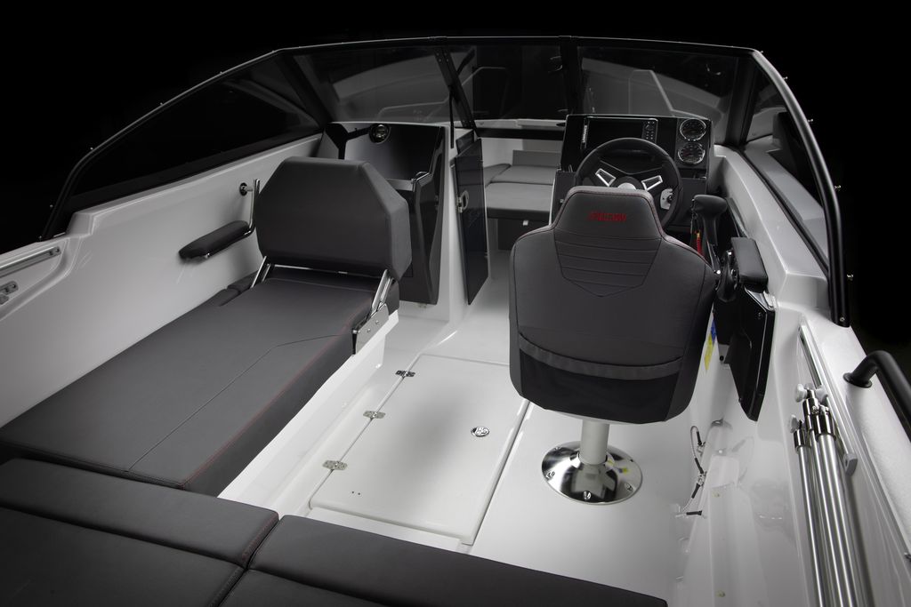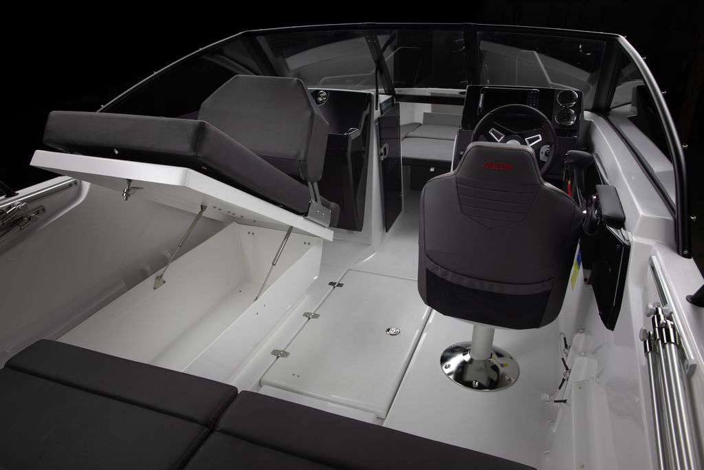 Falcon BRs6 erbjuder en balanserad båtupplevelse, oavsett om du planerar en längre dagstur med familjen eller en spontan kvällstur med en grupp vänner. Den L-formade soffan längst bak i båten utökar ytterligare det redan behagligt rymliga förvaringsutrymmet. Som en lätthanterlig och förvånansvärt smidig båt gör BRs6 dig till en kompetent skeppare som gör båtupplevelsen till en njutning