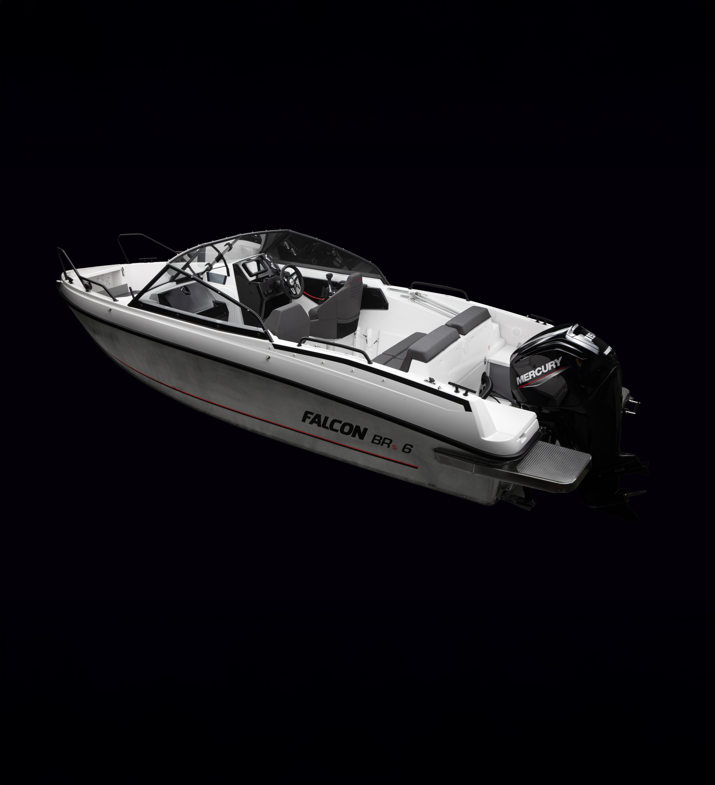 Falcon BR6 är en smidig och praktisk båt med häpnadsväckande mycket plats, som kan användas för både dagsutflykter, vattensport och vid fiske. Båtens formspråk ger ett intryck av mångsidighet och bekvämlighet; en ren layout, precisa detaljer och sömlöst integrerade lösningar gör att personer i alla åldrar och grupper känner sig som hemma på den här båten, som är designad och tillverkad helt enligt användarens behov.