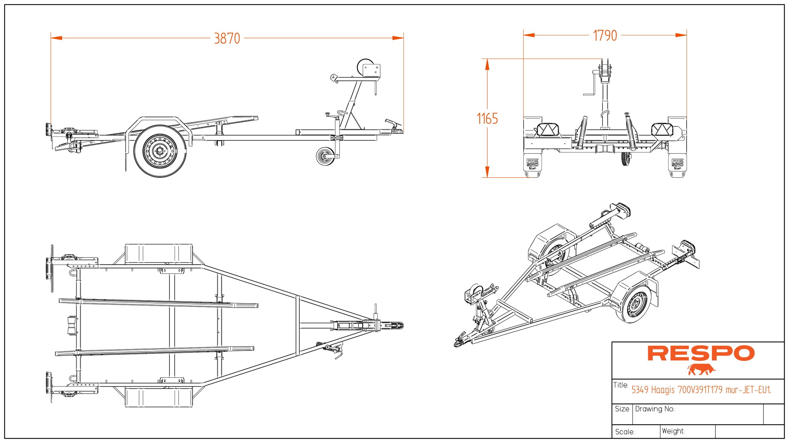 Denna nya trailer med kortare ramen passar bra speciellt till mindre maskiner (t ex mindre vattenskoter). Ramen är varm galvaniserad och hel svetsad och plåtdetaljer behandlade med mangnelis för bästa möjliga skydd i olika väderförhållande.