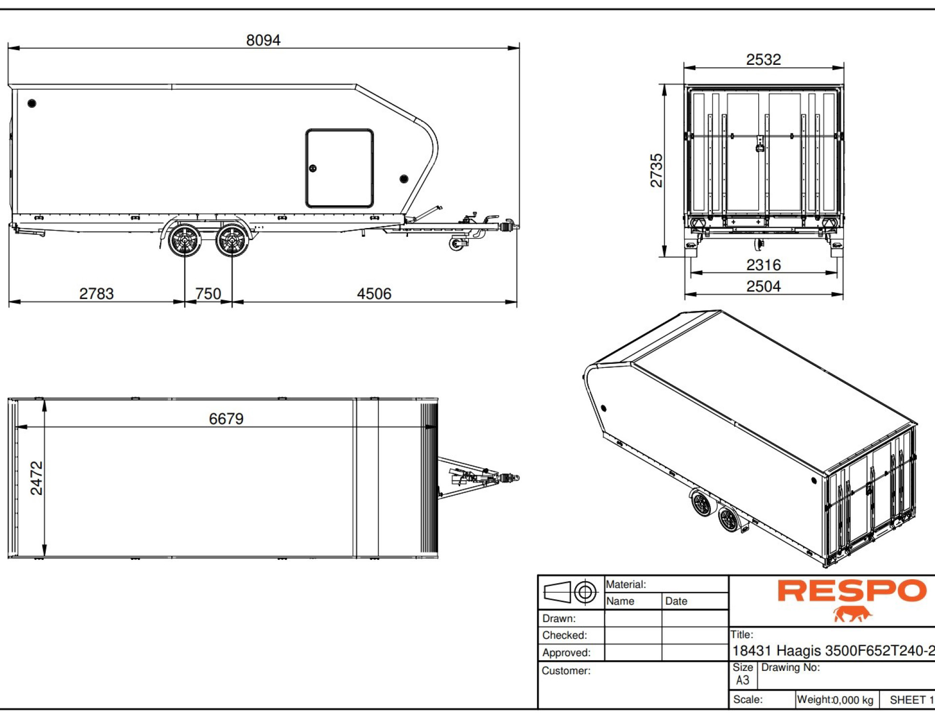 - Kokonaispaino:3500 kg