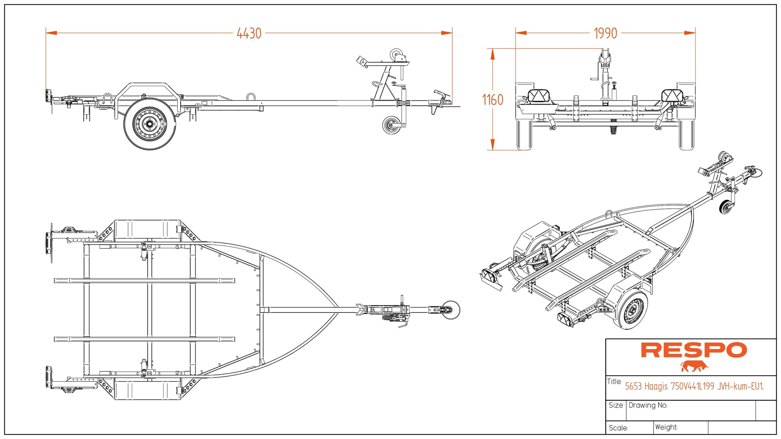 Kastamalla sinkitty hitsatturunkoinen jettitraileri. Lokasuojat ja muut pellistä komponentit ovat pinnoitettu Magnelis® korrosion suojakerroksella, mikä on kolme kertaa tehokkaampi kuin tavallinen HDG pinnoitteella pelti.Jokainen Respo-venetraileri on varustettu lokasuojilla, jotka kestävät normaalikokoisen ihmisen painon. Liukutasot on päällystetty huovalla hankaamisen välttämiseksi sekä ovat säädettäviä tarpeen mukaan.